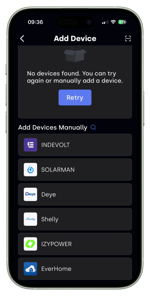 - P1 meter: koppel een geschikte P1 meter met je slimme meter en voeg deze toe in de Indevolt app bij de status pagina van het SolidFlex 2000 device. Je hebt hierbij keuze uit verschillende opties van P1 meters en CT klemmen (o.a. Solarman P1-2W, Ecotracker van Everhome en Shelly)