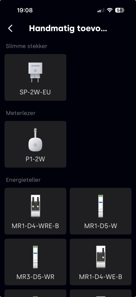 Naast de Solarman P1-2W P1 meter wordt ook de Shelly PRO 3EM ondersteund, zoals te zien is in de schermafbeelding hieronder.