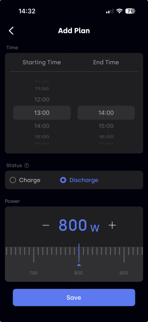 Dit is de standaard planningsoptie van de BK1600 Ultra, oftewel je wil voor een tijdsperiode x vermogen laden of ontladen.