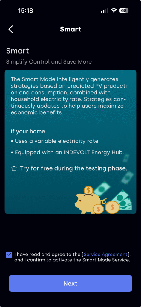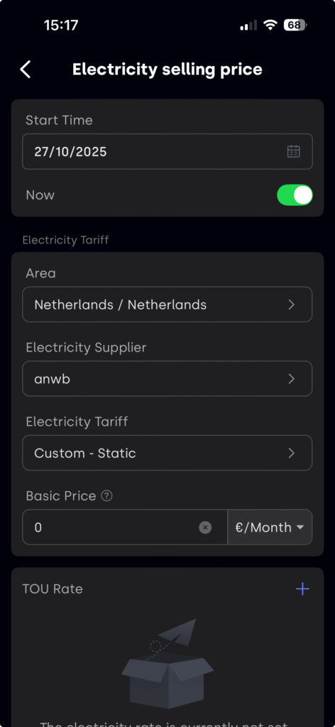 Deze modus optimaliseert het energieverbruik op basis van dynamische energietarieven, in combinatie met eventuele PV-productie. Om dit te gebruiken, selecteer je binnen je profiel het land en je energieleverancier. Momenteel worden de tarieven van leverancier ANWB en data leverancier Entsoe ondersteund, evenals een handmatige invoeroptie, al is die laatste vrij bewerkelijk. Een uitbreiding met meer energieleveranciers is wenselijk, zeker voor de Nederlandse markt. Maar via de Entsoe optie kun je je eigen standaard opslag toevoegen van je dynamische leverancier en zo de juiste tarieven in je app krijgen.
