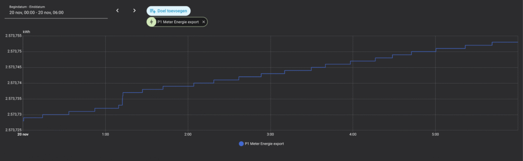 In deze zes uur bedroeg de totale netimport slechts 0,041 kWh en de export 0,025 kWh, prima resultaten. Dit toont aan dat met de Shelly PRO 3EM een nauwkeurige Nul-op-de-Meterregeling mogelijk is. Een DSMR 5.0 slimme meter (met een uitleesinterval van één seconde) en de Solarman P1 meter zou ook prima moeten zijn.