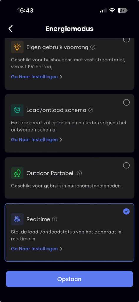 - ‘Realtime’ In deze stand bepaal jezelf realtime wat de laad/ontlaadwaarde moet zijn.