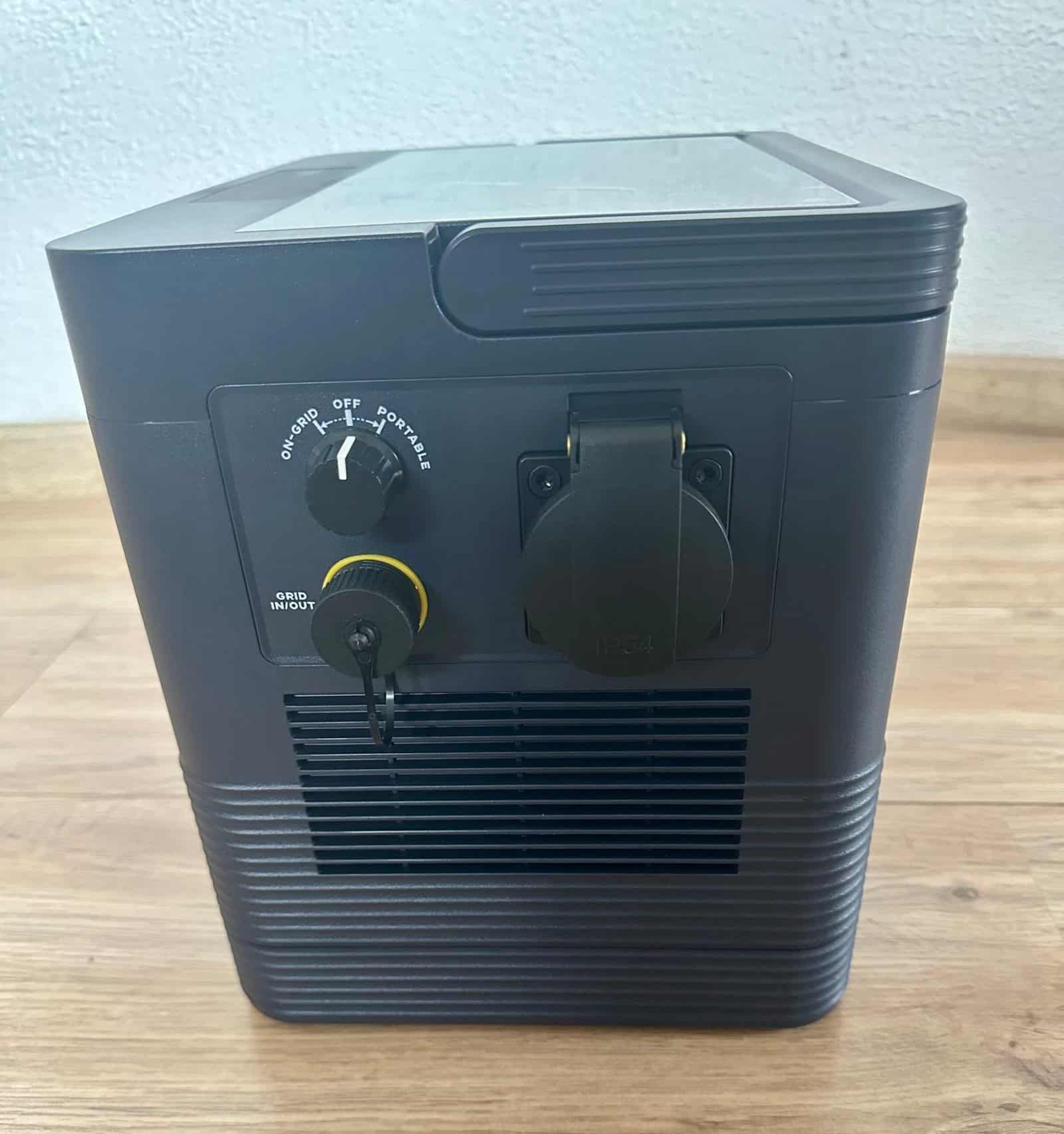 - ‘Outdoor Portabel‘ In deze stand fungeert de batterij als een echte draagbare batterij. Hij ontlaadt zich zodra er een apparaat op de off-grid ingang wordt aangesloten en begint direct weer op te laden zodra de batterij weer op het AC-net is aangesloten.