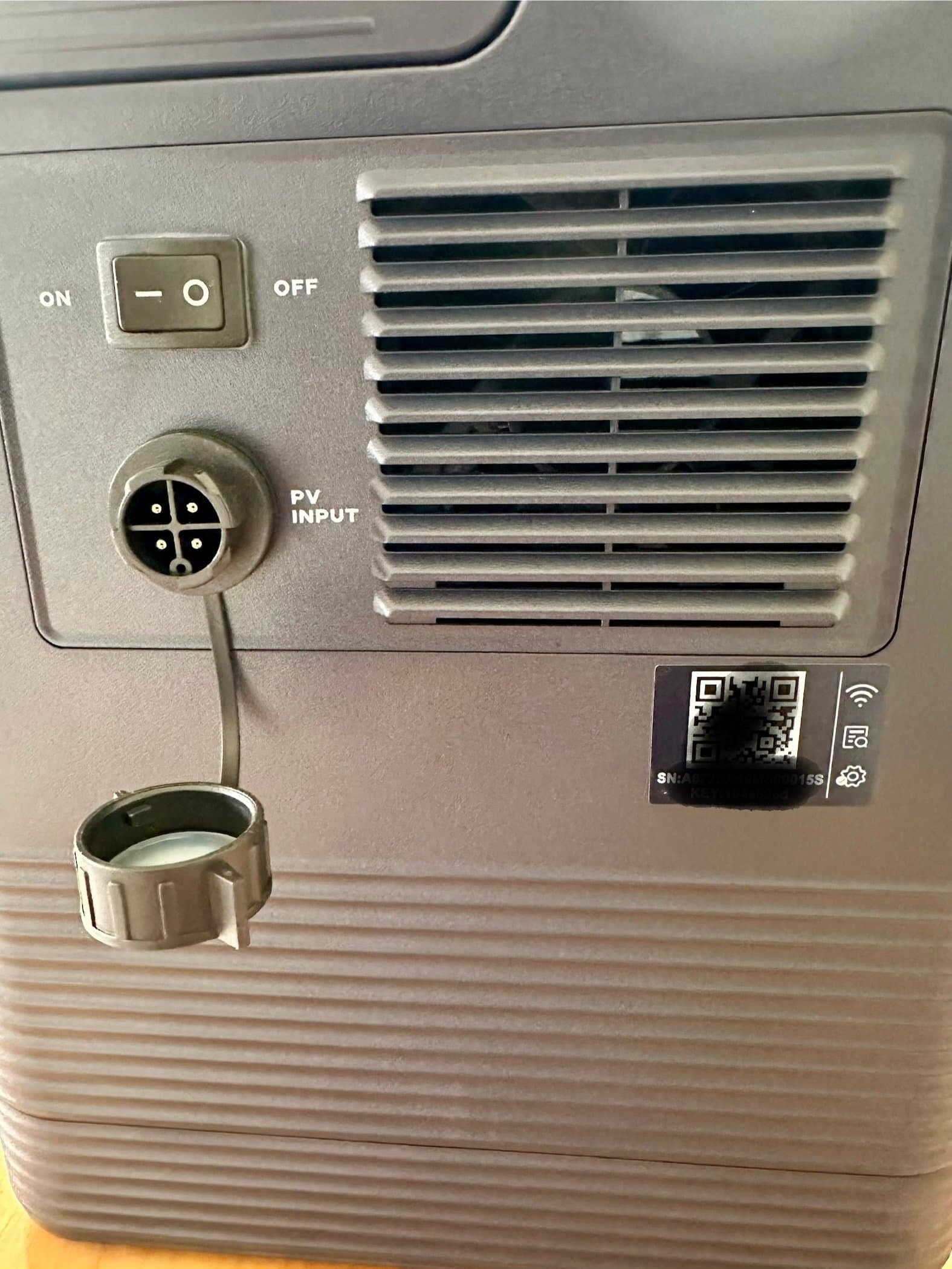 De totale laadcapaciteit via de 2 MPPT‑ingangen bedraagt 1200 W. Daarnaast kun je ook op het off‑grid‑stopcontact een micro‑omvormer aansluiten, waarmee je nog eens maximaal 800W kunt gebruiken om de accu’s op te laden. Het maximale laadvermogen blijft uiteraard 1200W maar het kan een combinatie zijn van de hier benoemde ingangen.