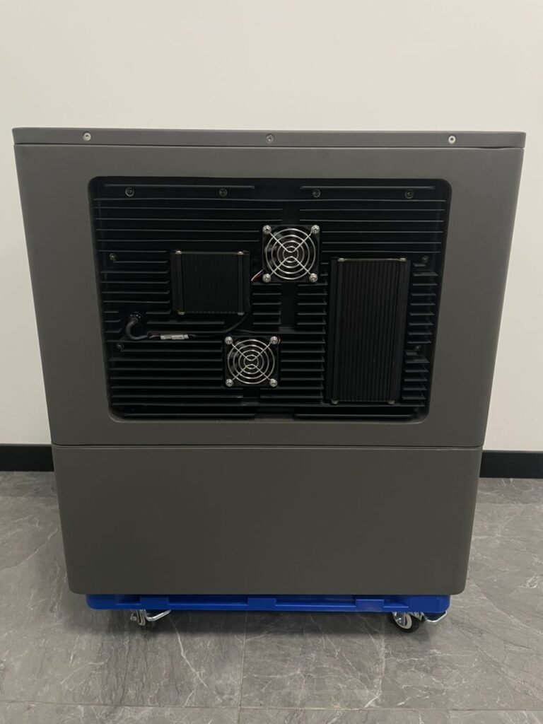 De unit is een staande “toren” met een rechthoekige footprint en afgeronde hoeken.