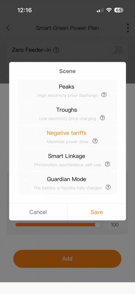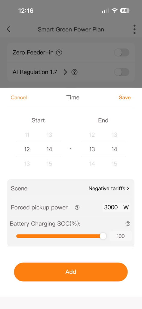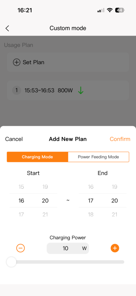 Met deze modus kun je de batterij binnen een specifieke tijdsperiode op de dag laten laden of ontladen. Je kunt echter geen dagen selecteren, alleen de tijdsperiode.