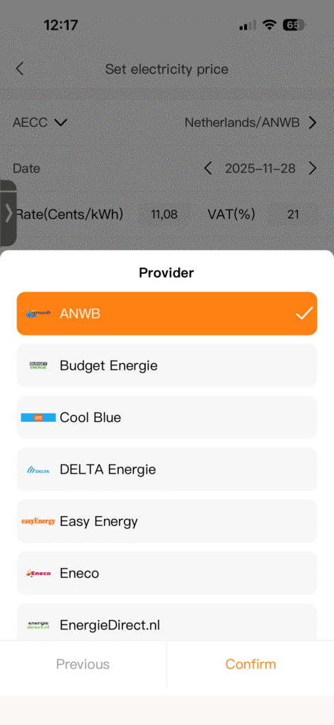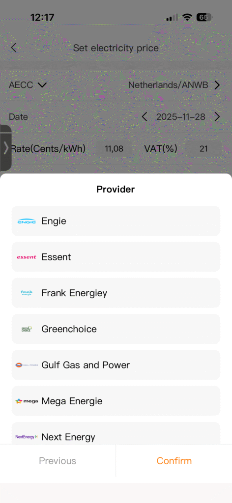 - Prijs per kWh