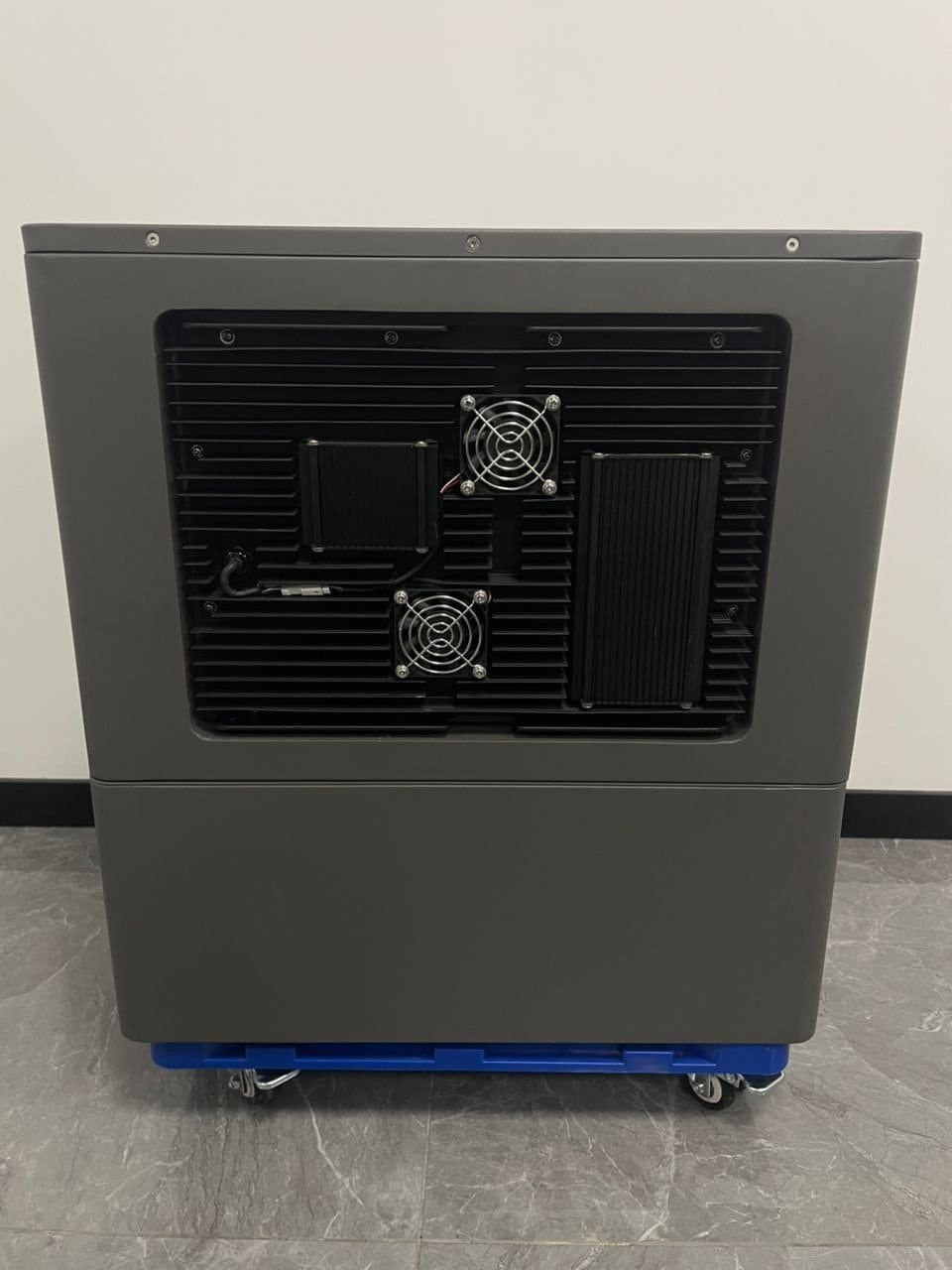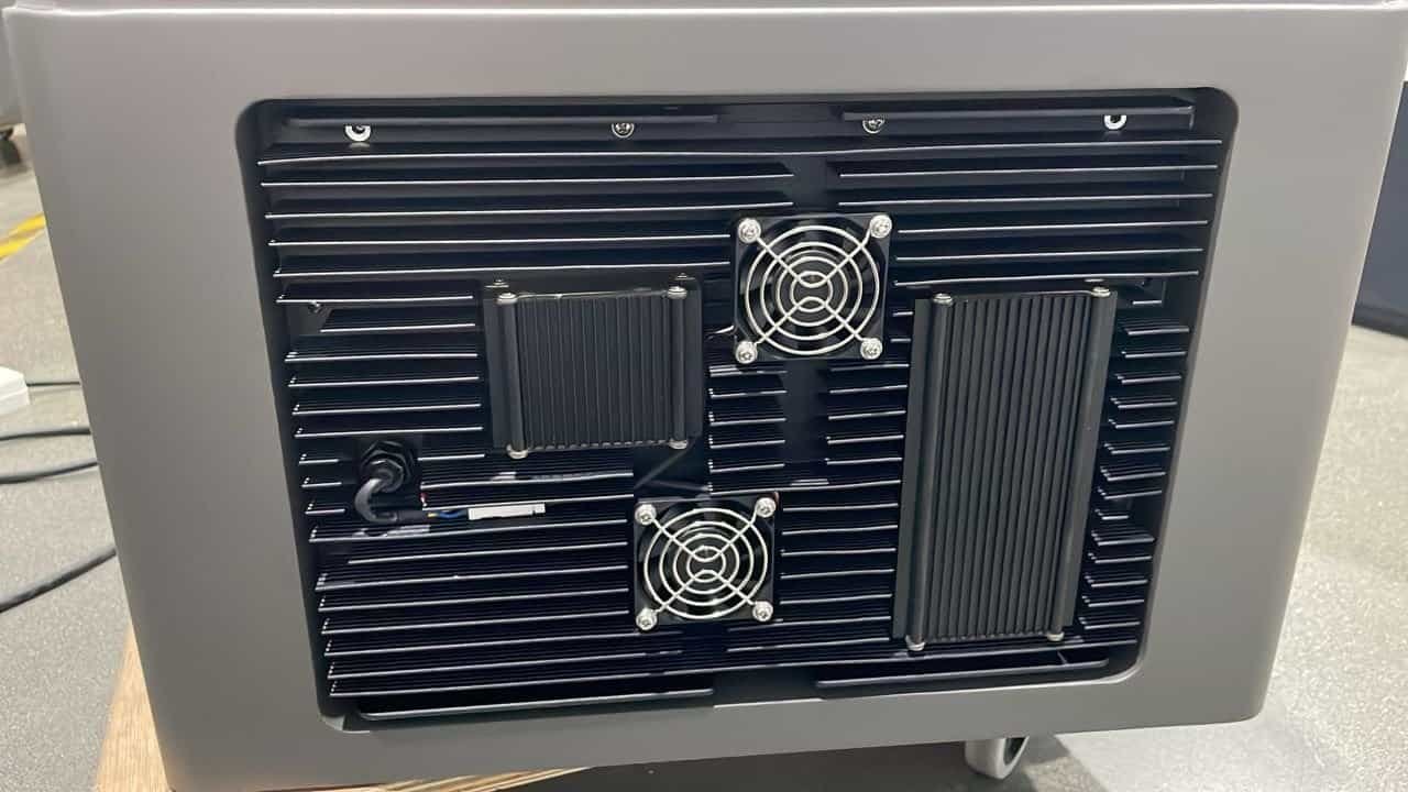 De achterkant bestaat uit metalen koelribben en ook een actieve koeling door middel van 2 kleine ventilatoren.