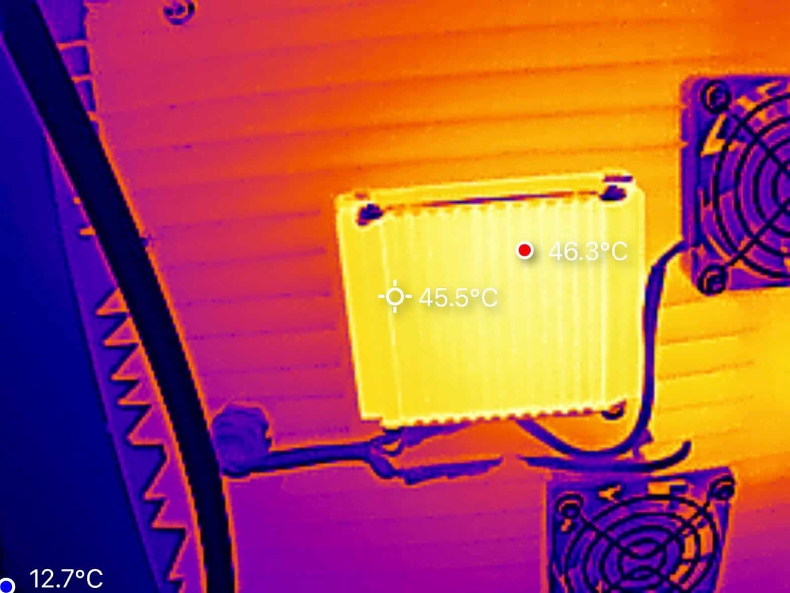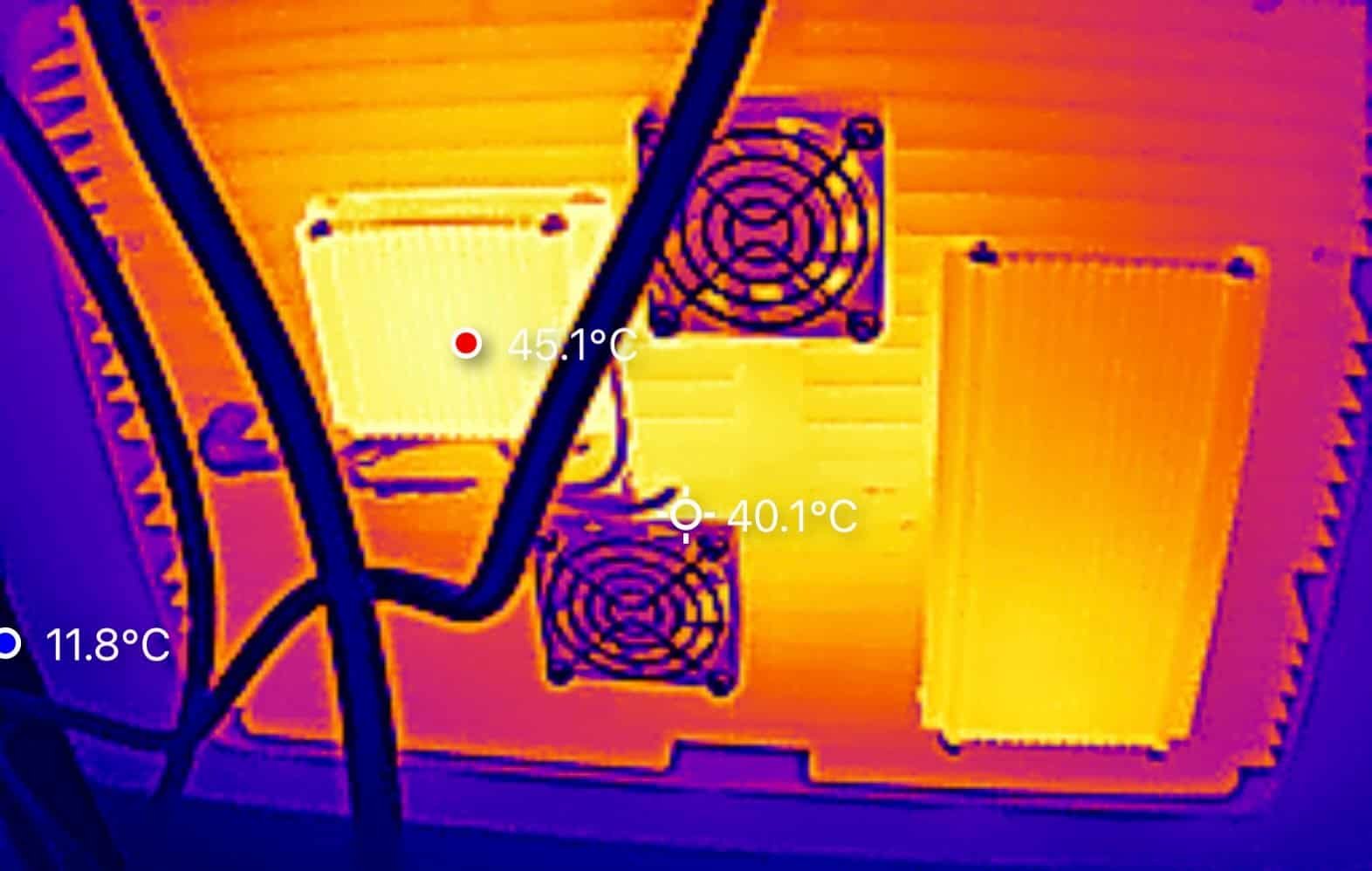 Opvallend is dat de twee ventilatoren tijdens deze test niet hoorbaar waren, wat erop wijst dat de passieve koeling doorgaans voldoende is. Bij extreme zomertemperaturen kan dit uiteraard veranderen, maar het is geruststellend dat er dan extra actieve koeling beschikbaar is, die alleen inschakelt wanneer dat echt nodig is. Dit verhoogt de veiligheid van het systeem. Volgens Lunergy worden de ventilatoren geactiveerd bij temperaturen boven de 60°C.