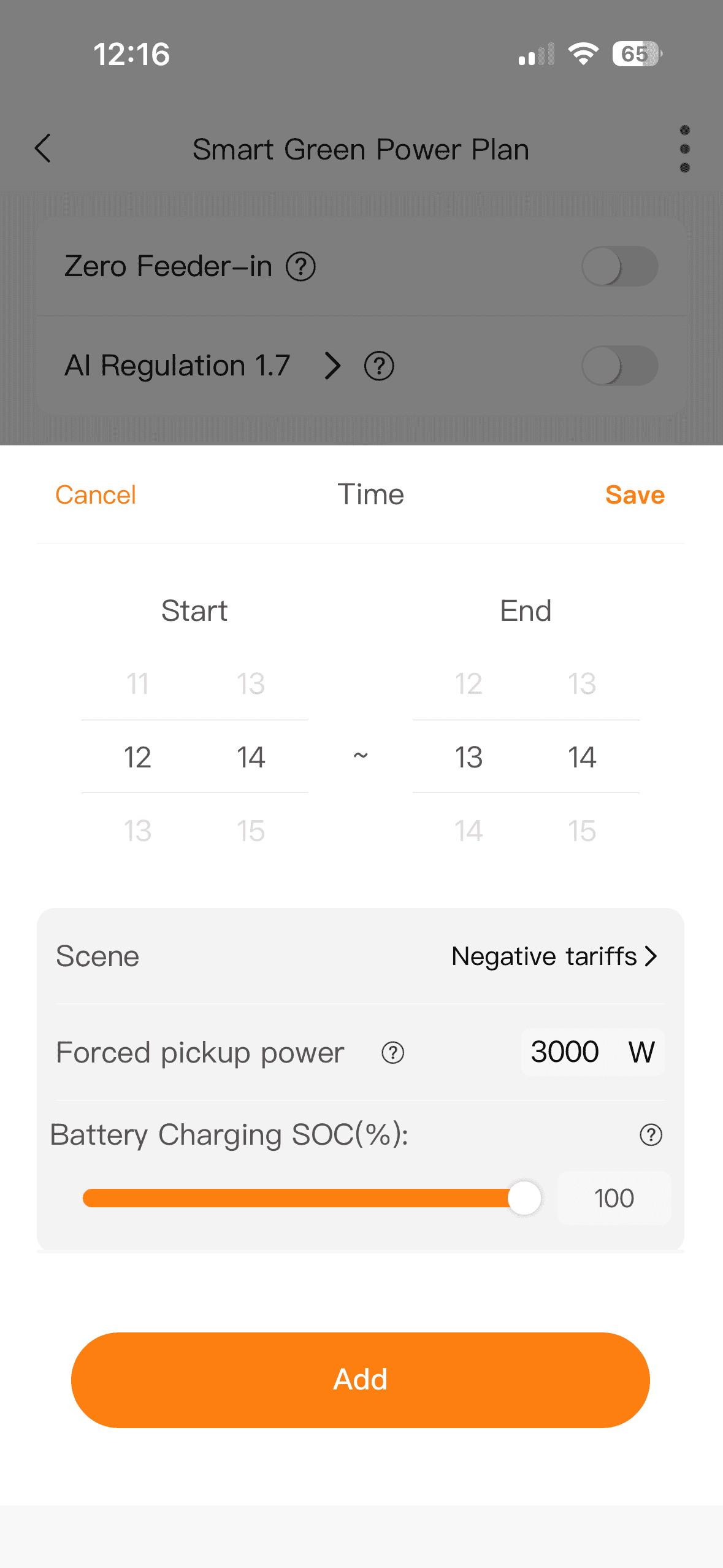 Met deze modus kun je de batterij binnen een specifieke tijdsperiode op de dag laten laden of ontladen. Je kunt echter geen dagen selecteren, alleen de tijdsperiode.