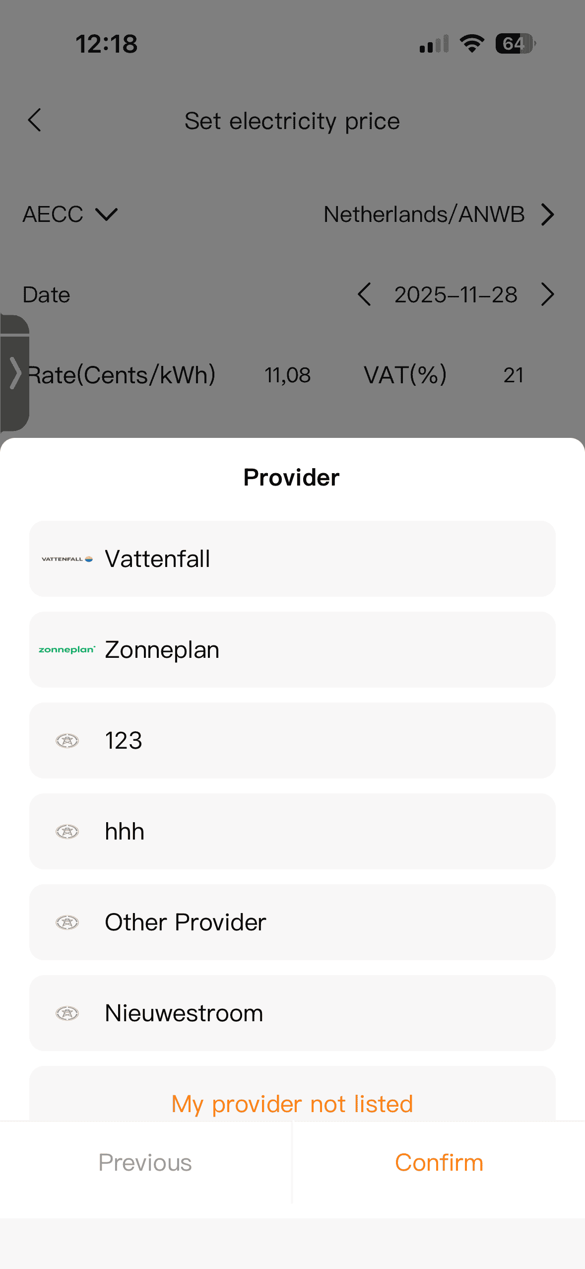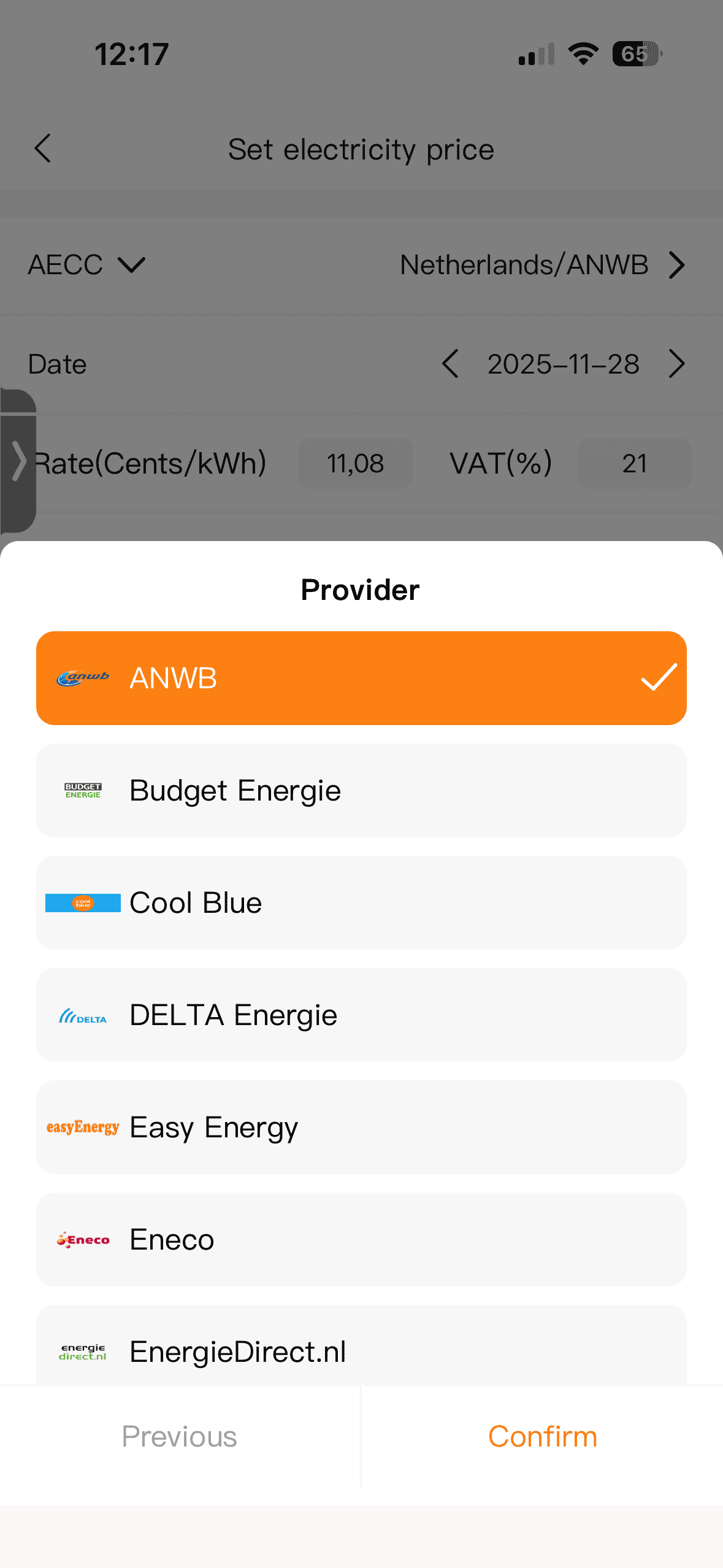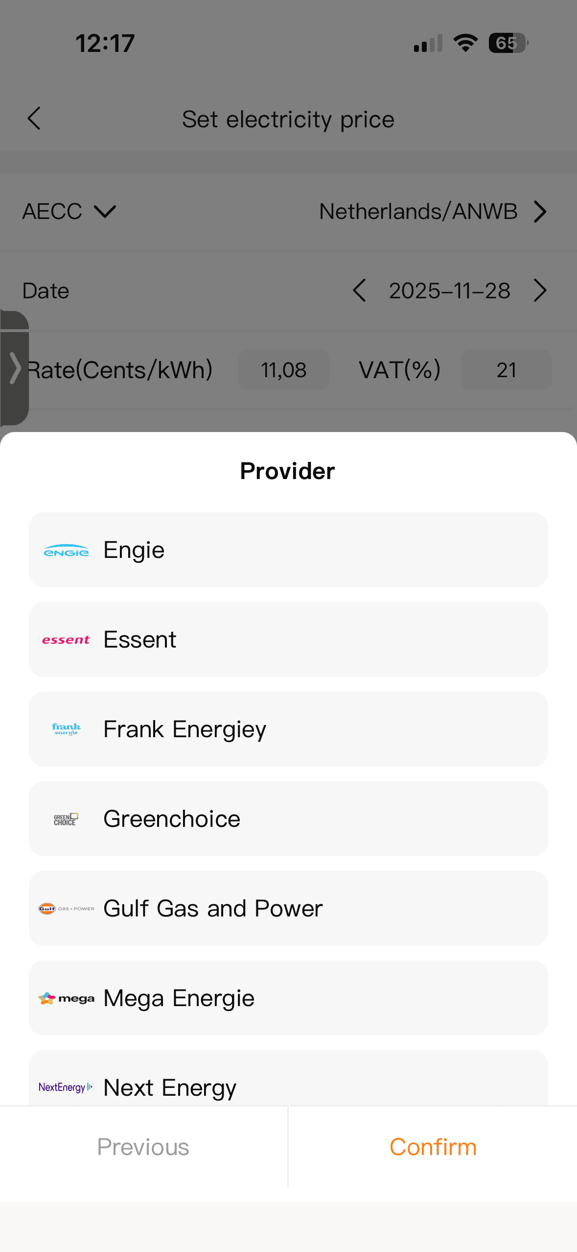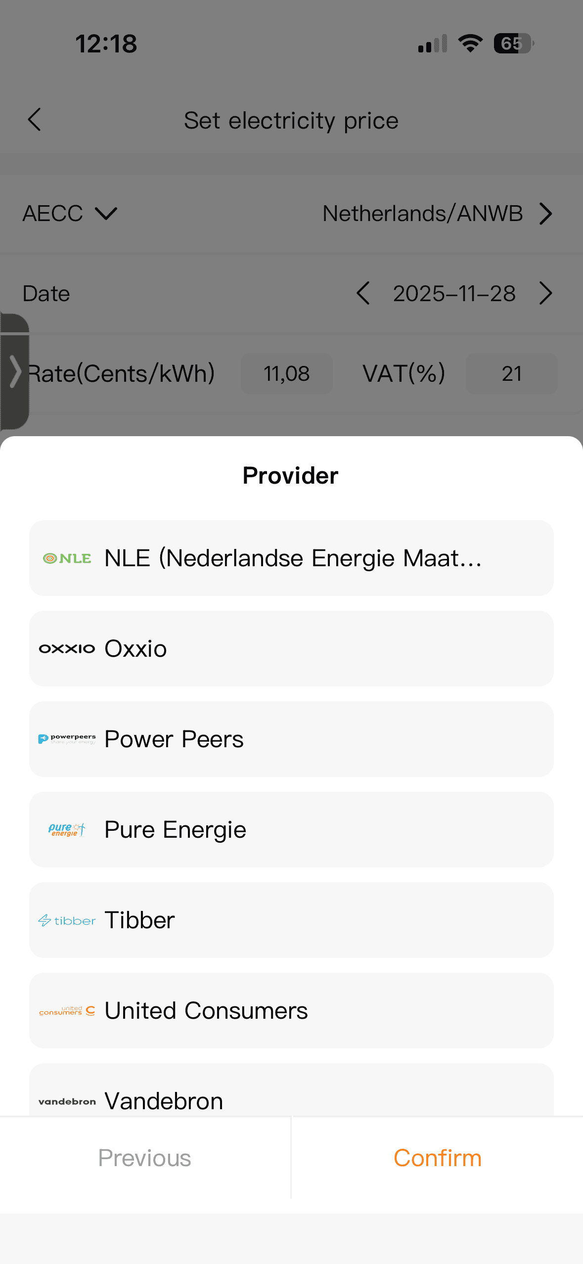 - Prijs per kWh
