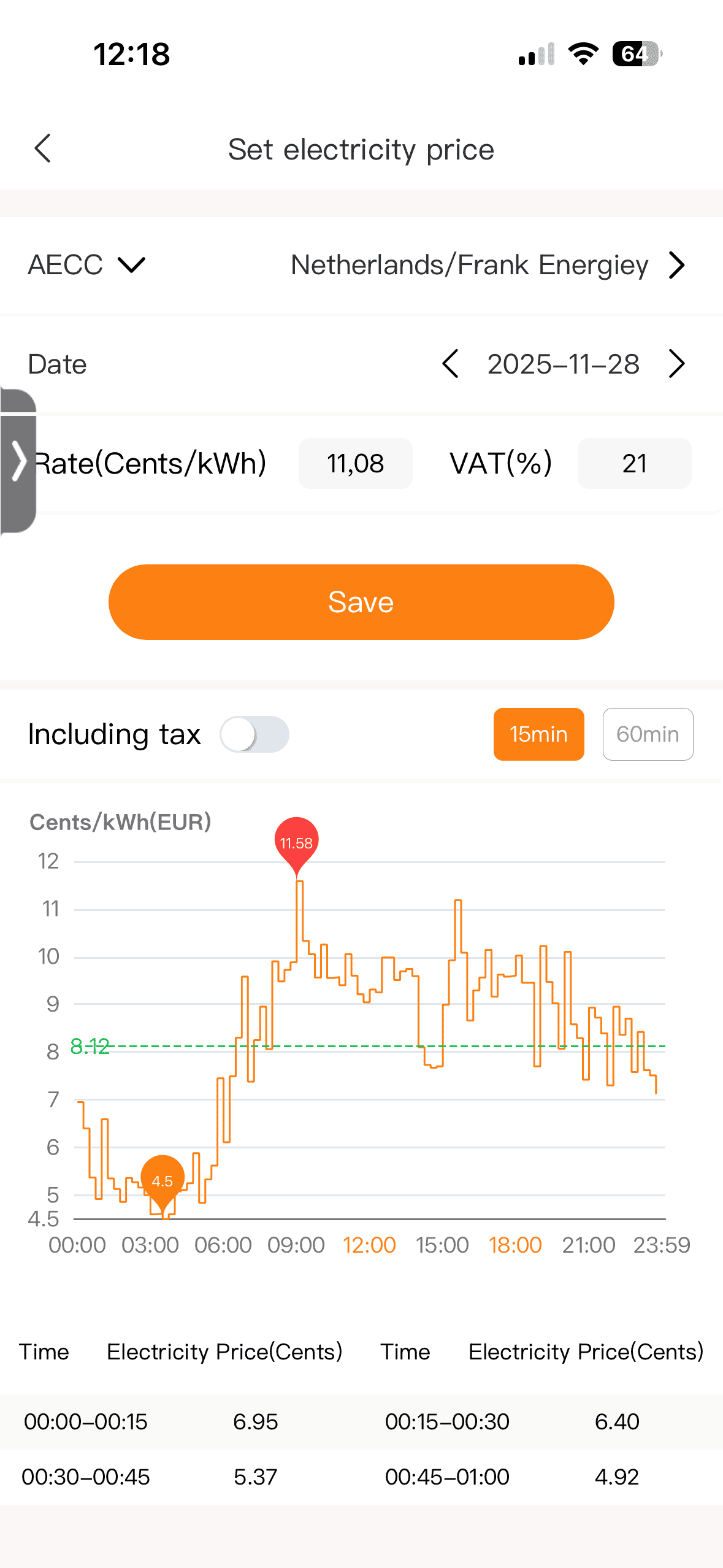- Custom mode: In deze stand kun je zelf vaste laad- en ontlaadtijden instellen over de dag, inclusief het gewenste vermogen per tijdsblok.