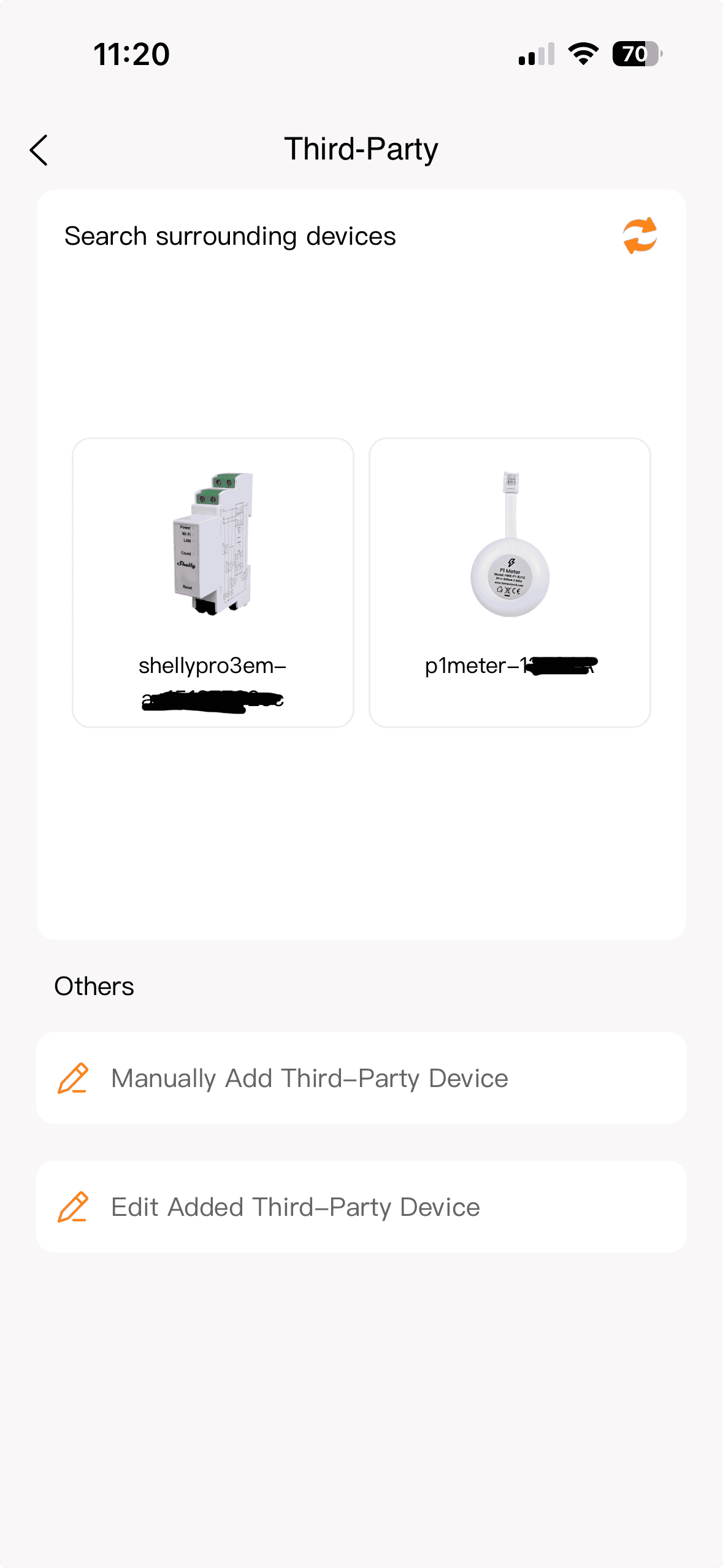 - P1 meter of CT klemmen: koppel de P1 meter met je slimme meter en voeg deze toe in de app als nieuw device. Wij gebruiken in dit geval de Homewizard P1 meter. Je hebt hierbij keuze uit verschillende opties van P1 meters en CT klemmen: