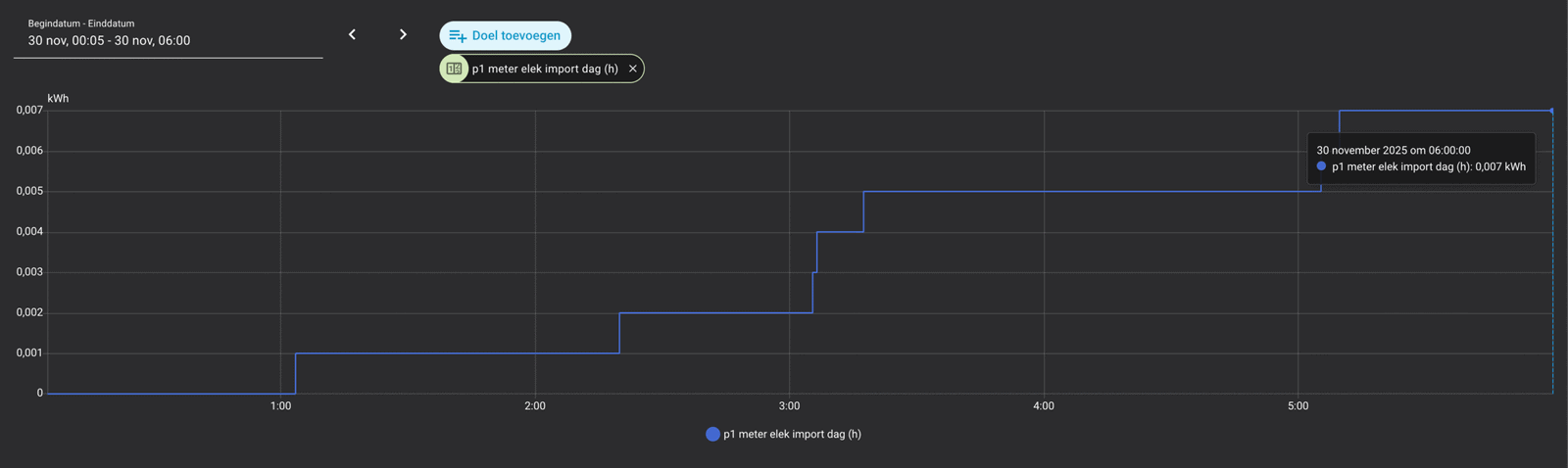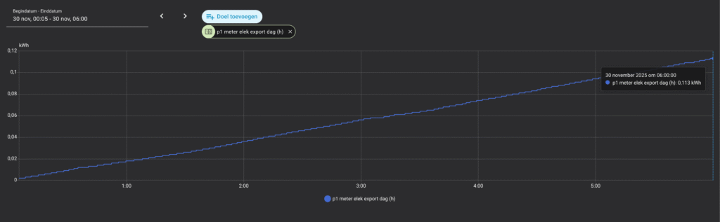 📊 In deze zes uur bedroeg de totale netimport slechts 0,007 kWh, terwijl de export 0,113 kWh was. Vooral het minimale importcijfer is een sterk resultaat. Dit bewijst dat met de Homewizard P1-meter, in combinatie met een DSMR 5.0 slimme meter (met uitleesinterval van één seconde), een uiterst nauwkeurige Nul-op-de-Meterregeling mogelijk is.