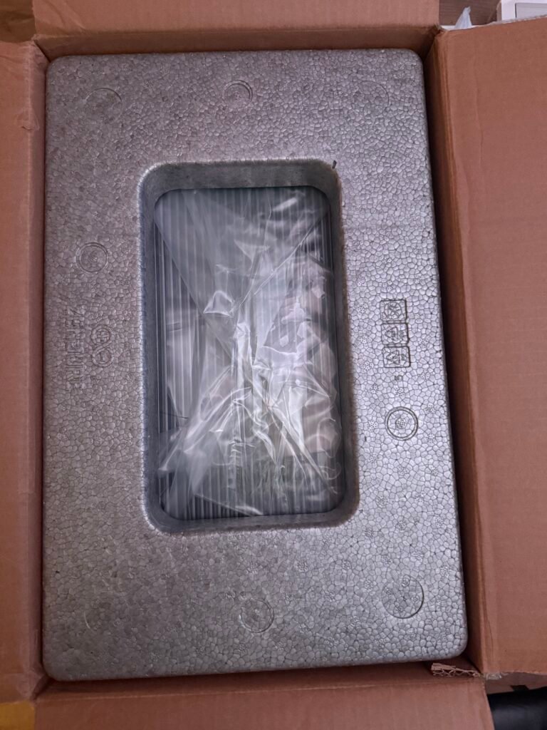 De SolarFlow 800 Plus zit stevig en stabiel verpakt in een karton doos met extra bescherming.