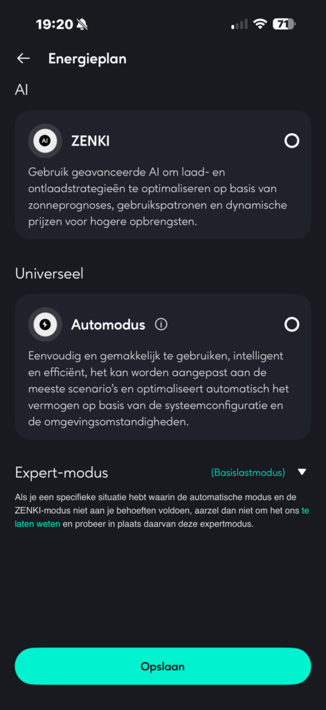 De eerste twee modi zijn vooral set‑and‑forget opties, ideaal voor huishoudens die zich niet intensief willen bezighouden met hun batterijen. De derde modus richt zich juist op gebruikers die het interessant vinden om hun energiegebruik en kostenoptimalisatie zo nauwkeurig mogelijk af te stemmen op hun eigen situatie. Dankzij deze duidelijke structuur – automatisch of expert – blijft het overzichtelijk en voorkom je dat gebruikers verdwalen in een wirwar van instellingen zonder te weten wat het beste werkt.