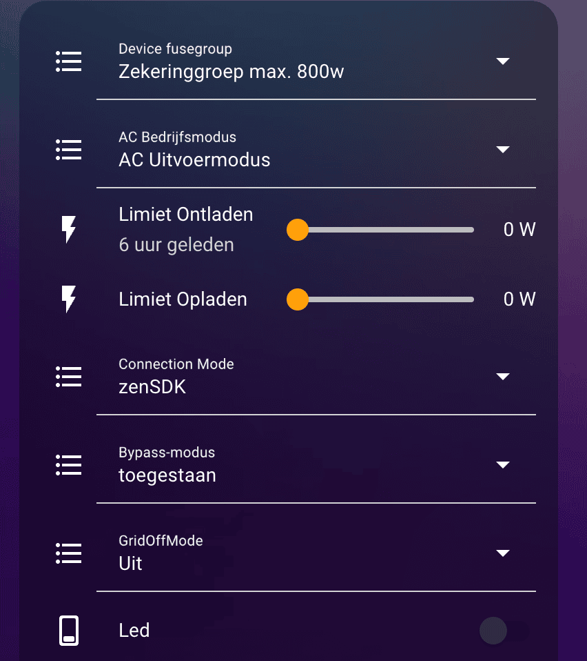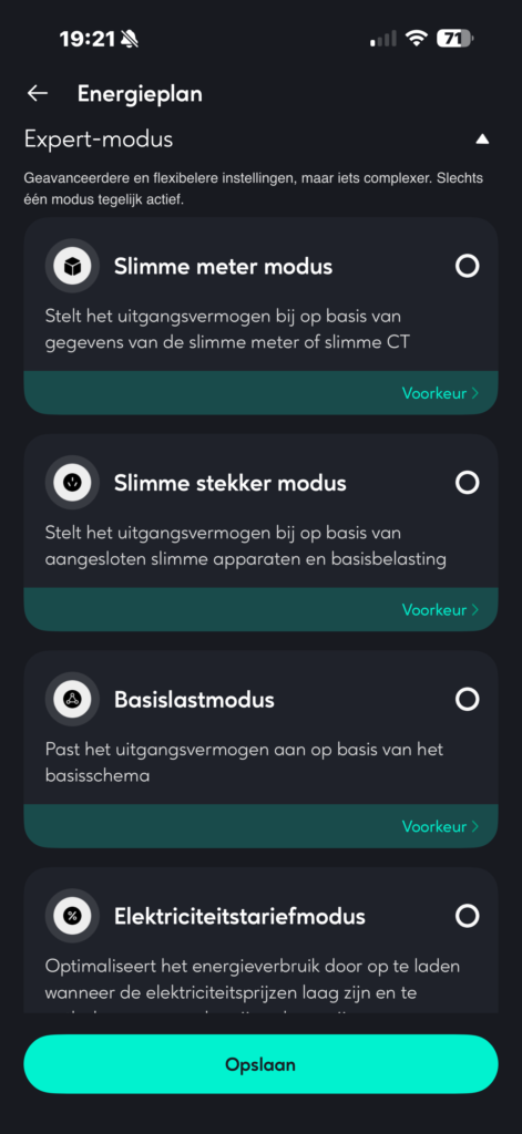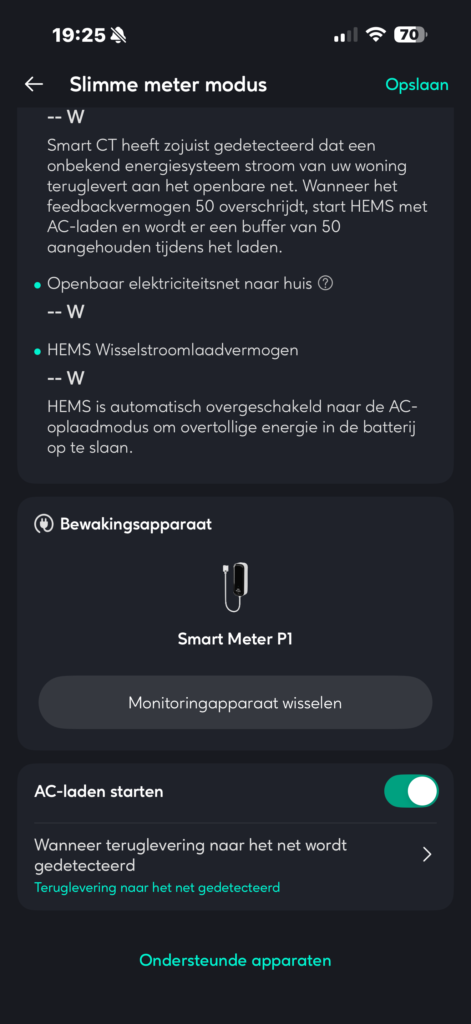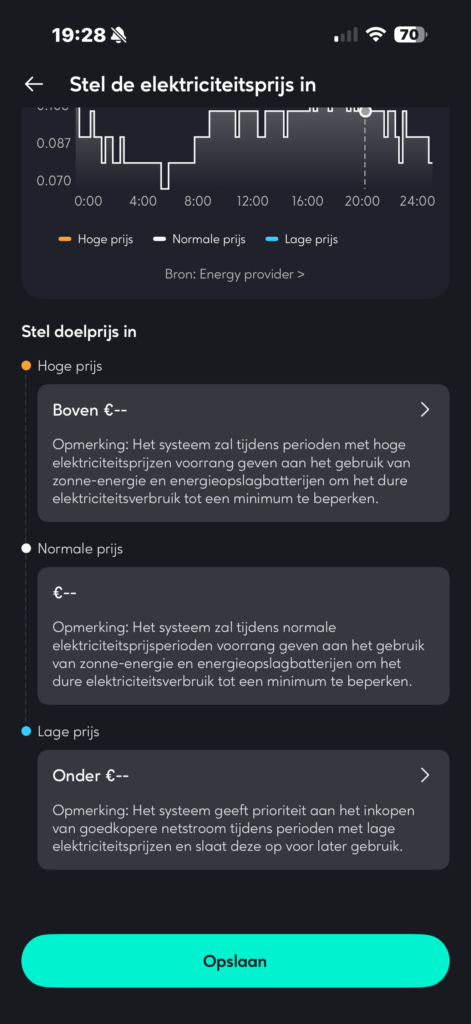 Je hebt ook de mogelijkheid in de app om teruglevering aan het net te voorkomen. Dit is voor dynamische tarieven die eventueel negatief zijn wel handig, zodat het terugleveren je geen geld kost.