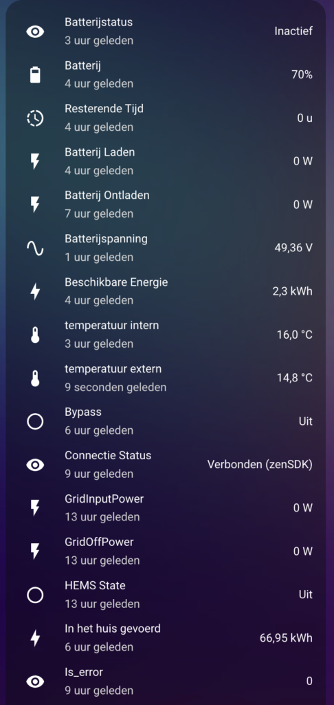 Als je liever de app gebruikt voor aansturing kun je de integrate ook gebruiken om allerlei status informatie in je Home Assistant te tonen van de batterijen.
