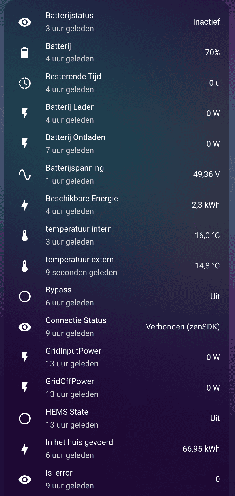 Als je liever de app gebruikt voor aansturing kun je de integrate ook gebruiken om allerlei status informatie in je Home Assistant te tonen van de batterijen.