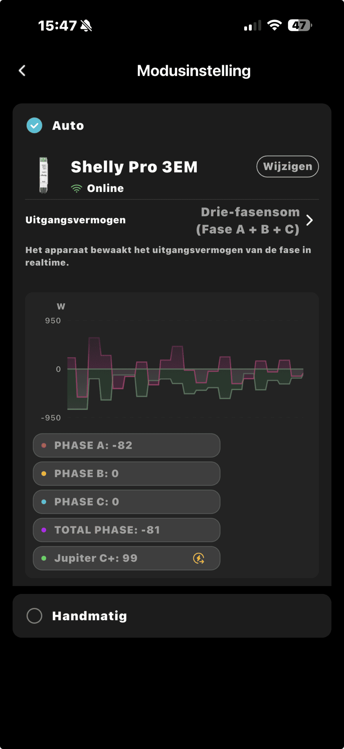 Als je liever een P1‑meter van HomeWizard of een andere P1‑meter gebruikt die al in Home Assistant is geïntegreerd, dan kun je ook de Marstek‑emulator voor de Shelly Pro 3 EM inzetten. Deze oplossing werkt eveneens probleemloos met de Jupiter C+, zoals wij tijdens onze tests hebben bevestigd.