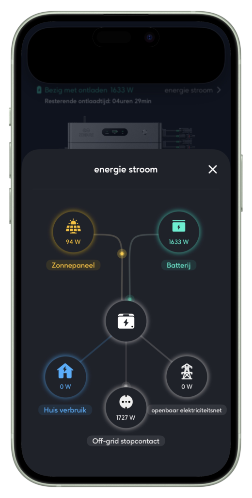 - Opslagcapaciteit Basisbatterij van 2,4 kWh (LiFePO₄), uitbreidbaar tot 16,8 kWh
