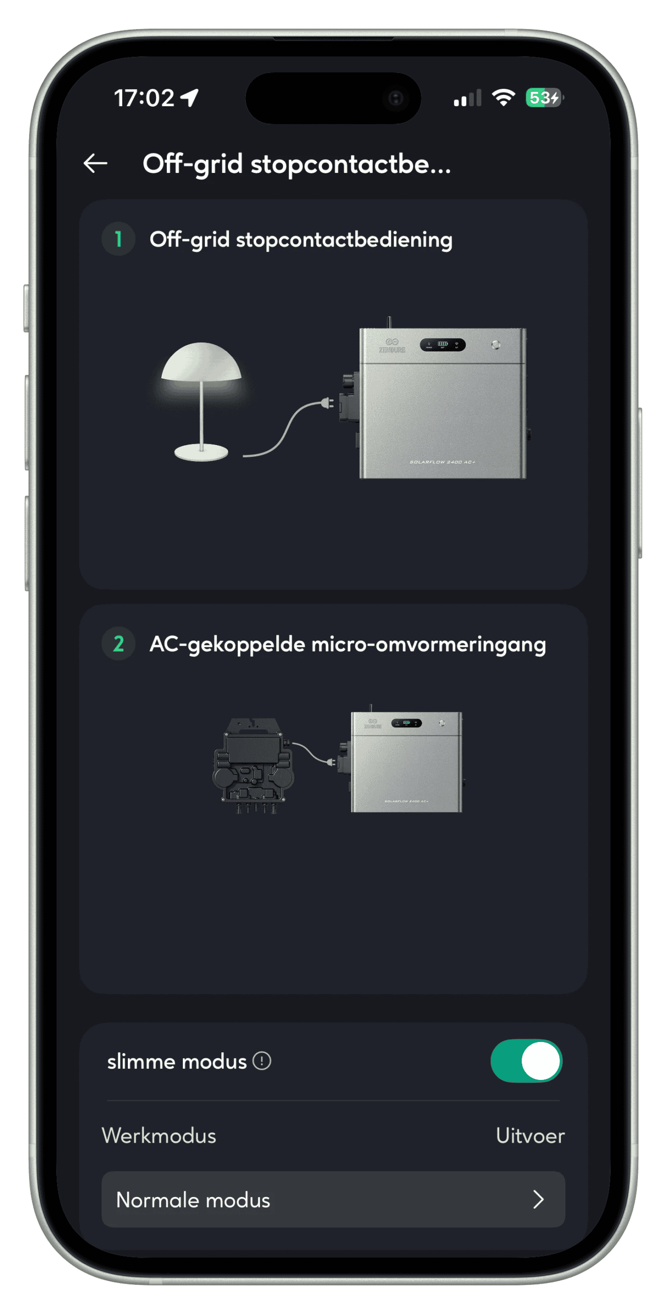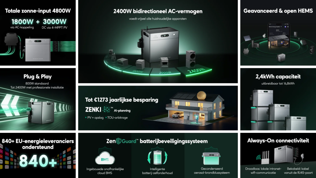 - Besturing & integratie Zendure‑app (WiFi/Bluetooth) met de modi Zenki, Auto en Expert