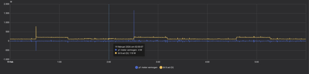 Dit speelt vooral een rol bij dynamische energiecontracten. Daarbij is het juist gunstig om in korte tijd met een hoog vermogen te laden of te ontladen. Daarom herhalen we deze test zodra de SolarFlow 2400 Pro op een vaste aansluiting met een eigen groep is geïnstalleerd en we kunnen testen op het maximale vermogen van 2400 W. Daarvoor is wel een grotere batterij nodig dan we nu hebben, zodat dit hoge vermogen veilig verwerkt kan worden zonder onnodige slijtage (de zogenaamde C-rate verhouding).