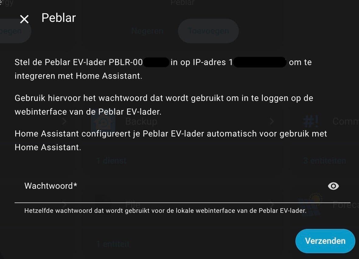 De Peblar Business beschikt over een Home Assistant integratie die eenmaal geactiveerd zelf een aantal entiteiten in Home Assistant aanmaakt, zowel voor het uitlezen van de Peblar als aansturen! Home Assistant herkent ook automatisch dat er een Peblar in het lokale netwerk aanwezig is en met 2 klikken en het ingeven van je lokale Peblar wachtwoord kun je hem dan ook toevoegen. De integratie is als “Platinum Quality” aangemerkt waardoor je zeker weet dat alles volledig op Home Assistant aansluit en aan de hoogste eisen voldoet.