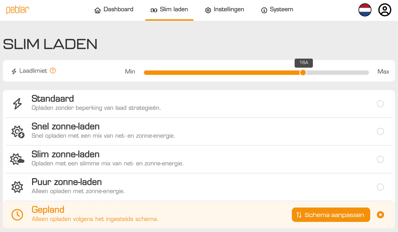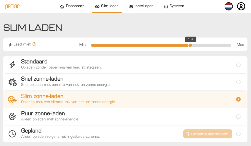 Het zou mooi zijn als Peblar in de planningsmodule ook de mogelijkheid opneemt om per blok aan te geven welke laadmodus je wilt gebruiken.