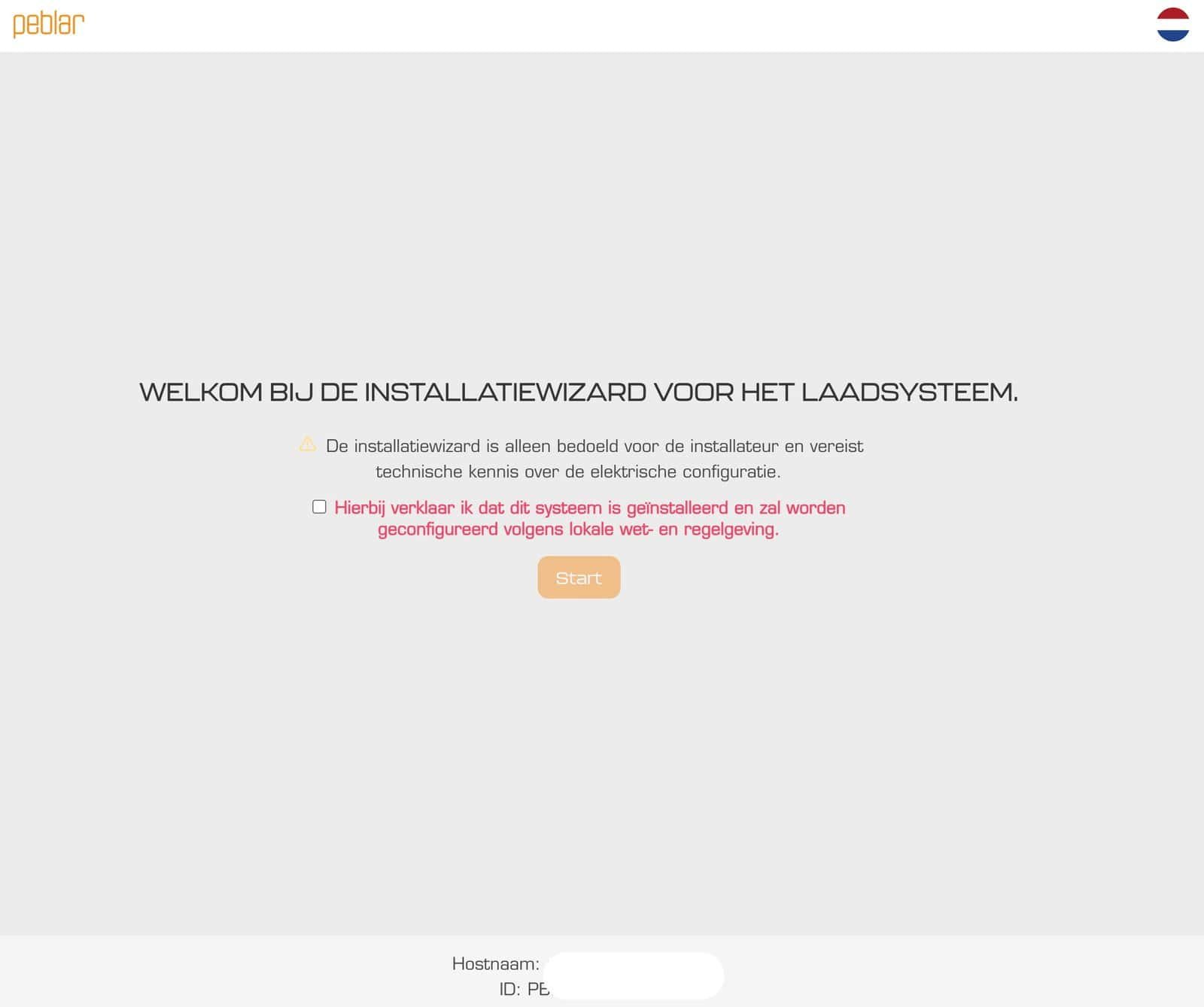 Normaal gesproken wordt de Peblar Business door een installateur geplaatst. Om je een idee te geven van de configuratie, zie je hieronder de verschillende schermen van de installatiewizard.
