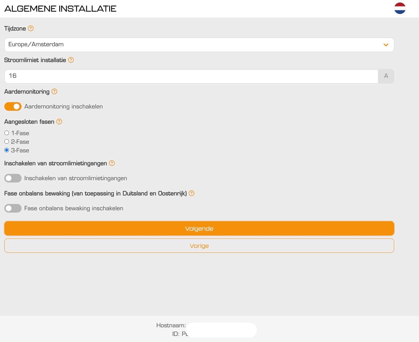 Wanneer de lader voor het eerst wordt opgestart, biedt de web-app een stap-voor-stap proces voor de installateur. Hier stel je de cruciale veiligheidsparameters in: