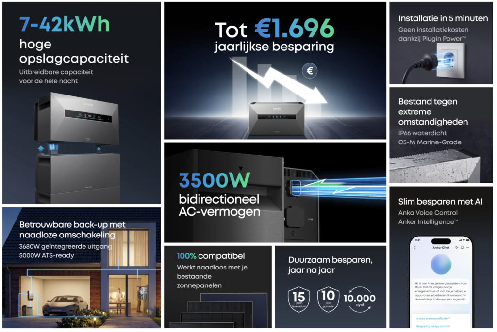 Vandaag waren wij namens Energienerds aanwezig bij de officiële productpresentatie van Anker SOLIX in Amsterdam. Anker presenteerde hun nieuwste paradepaardje: de Solarbank Max AC. Met een vermogen van 3500W en een gigantische opslagcapaciteit tot 42kWh zoekt Anker de absolute grens op van wat er mogelijk is met een plug-in thuisbatterij.