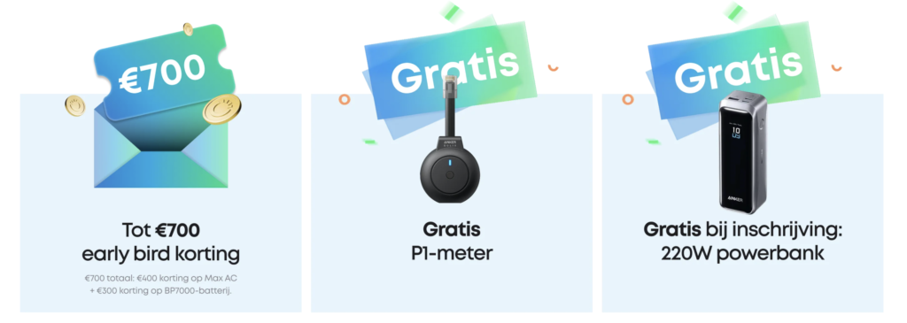 - Gratis gadgets: Voorinschrijvers ontvangen een gratis P1-meter en een Anker Powerbank (20.000mAh).
