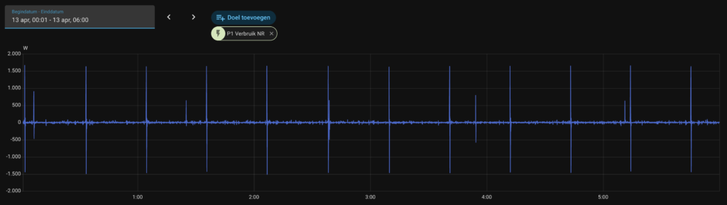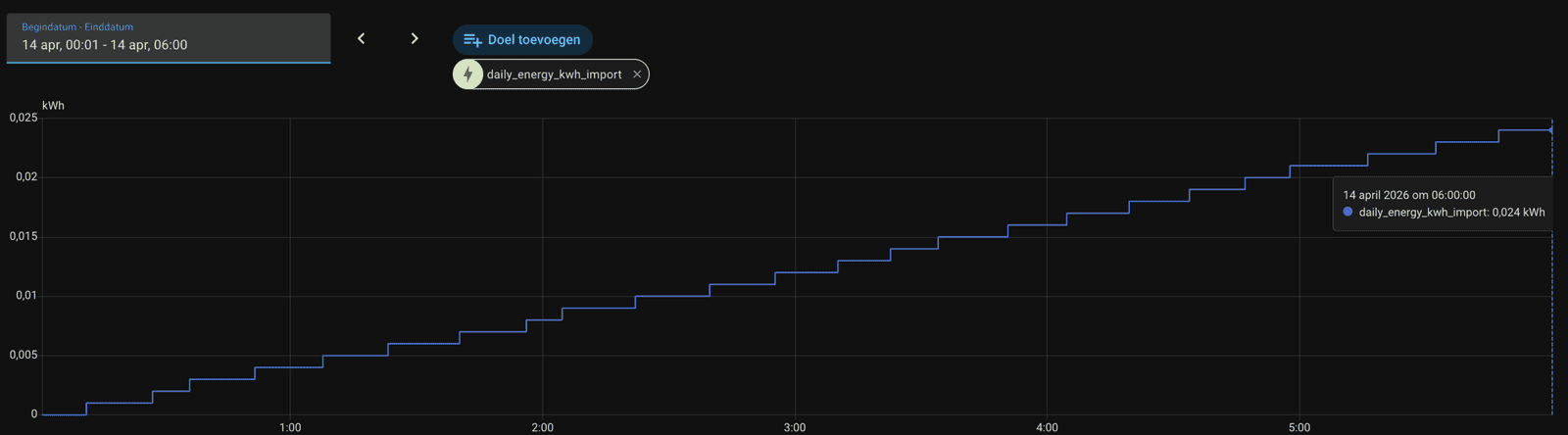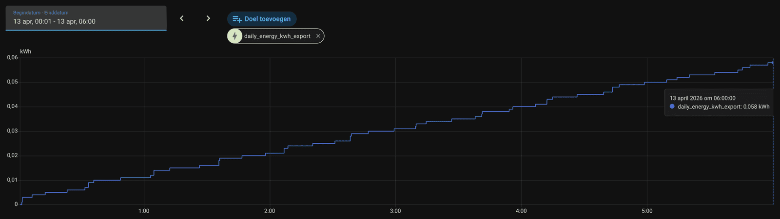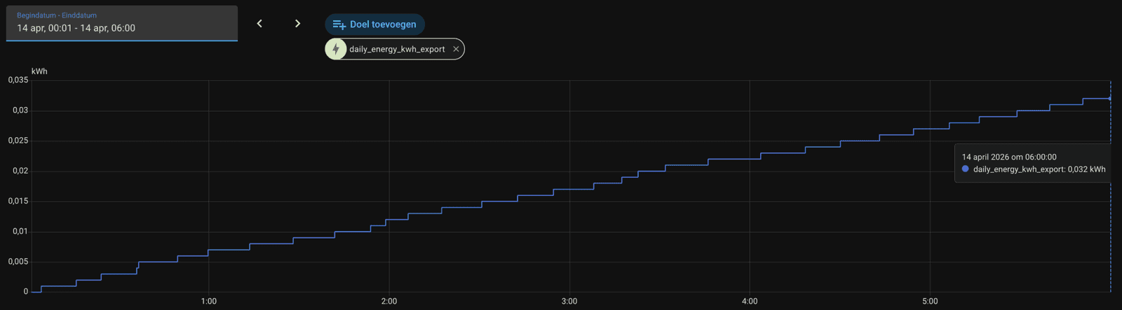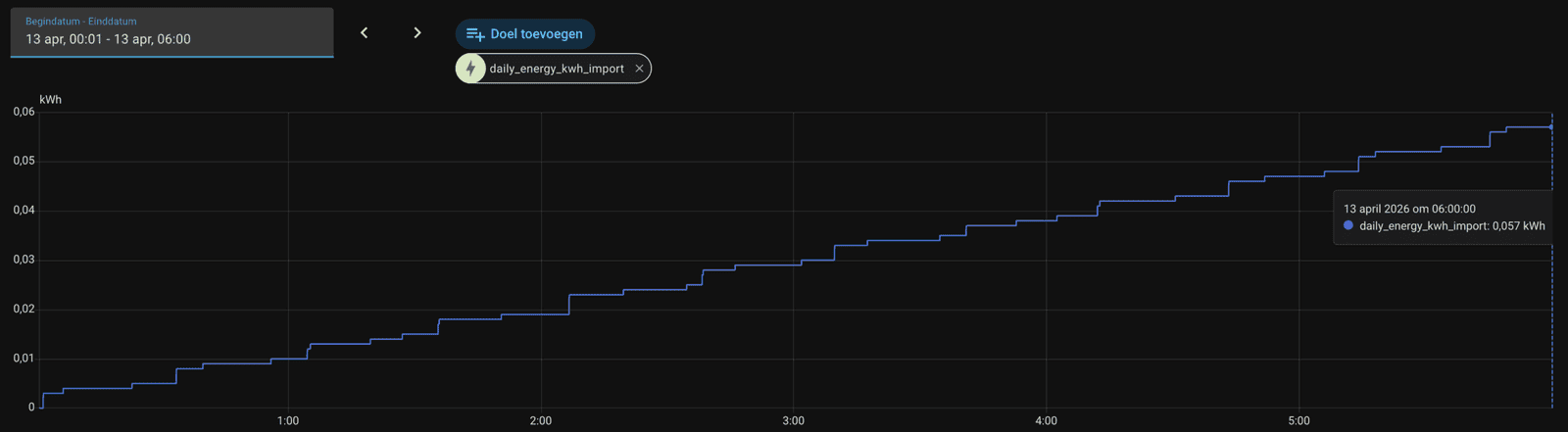 In NOM‑modus houdt het systeem import en export vrijwel in balans. Tijdens tests presteerde de SolarVault zeer nauwkeurig, met beperkte afwijkingen rond de nul‑lijn.