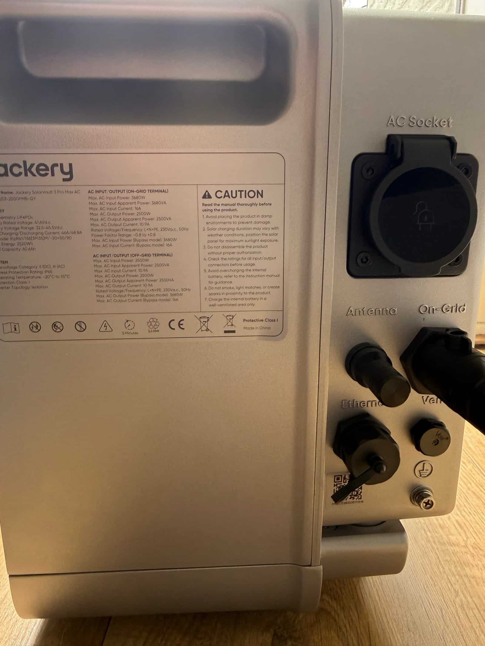- Vermogen: AC‑uitgang van 0–800 W via een standaard stopcontact en tot 2500 W op een eigen groep met vaste aansluiting