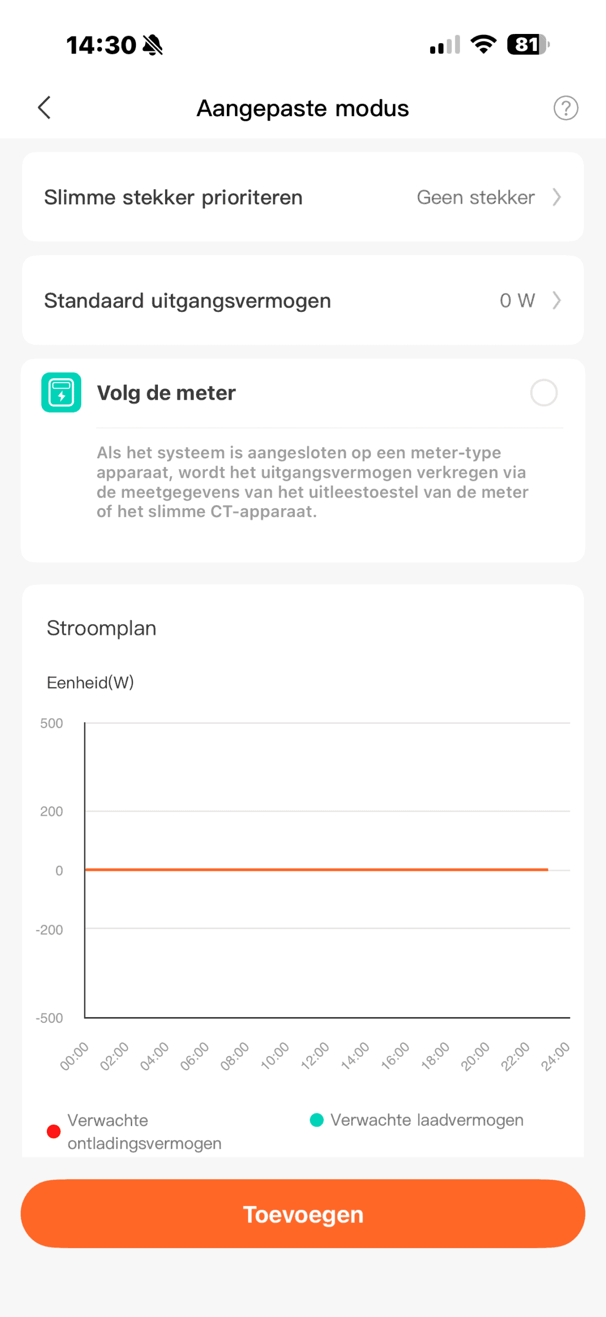 Let op: 🔥 met 2,5 kWh batterij capaciteit kun je met maximaal 1.800W laden en 1.600W ontladen. Dit om de levensduur van de batterij te behouden (Capacity-rate). Heb je 5 kWh of meer dan kun je met 2.500W laden en ontladen.