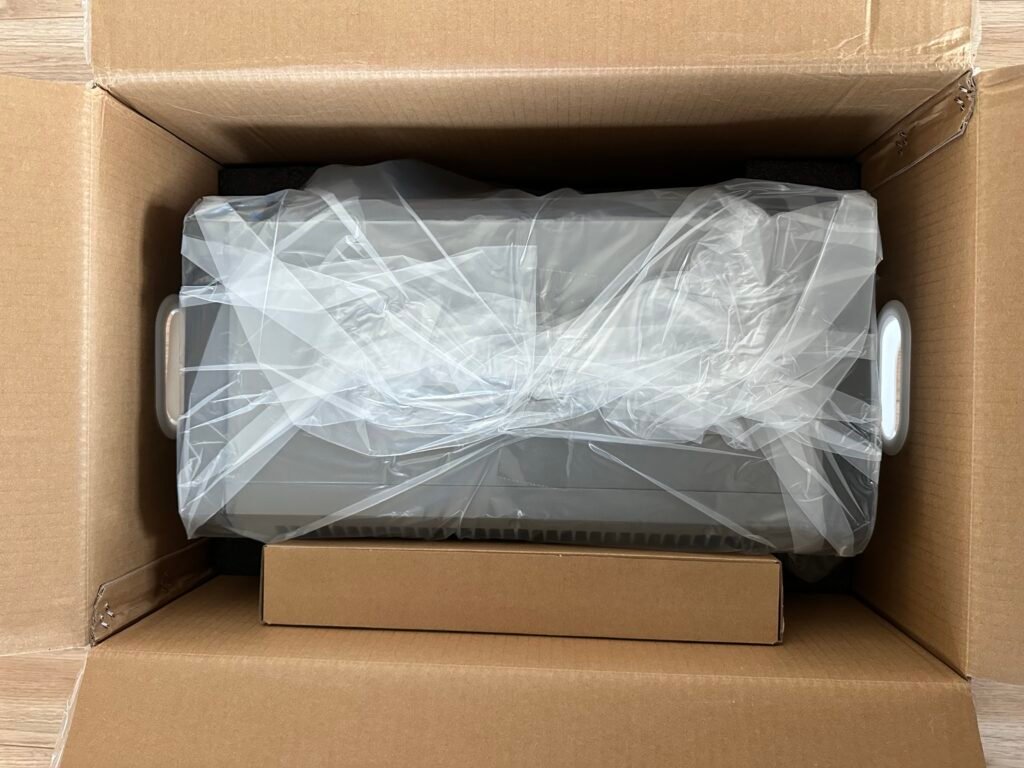 Die HiBattery 1920 AC ist sicher und stabil in einem Karton mit Verpackungsschaum verpackt. Nachfolgend finden Sie Fotos vom Auspacken und der Inbetriebnahme.
