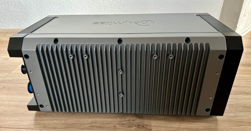 Darüber hinaus verfügt die HiBattery 1920 AC über eine passive Kühlung, wie auf dem zweiten Foto deutlich zu sehen ist. Dadurch bleibt der Geräuschpegel in der Umgebung minimal, sodass Sie nur gelegentlich ein leises Klicken eines Relais hören. Durch diesen geräuschlosen Betrieb ist es einfacher, einen geeigneten Standort für die HiBattery 1920 AC zu finden.