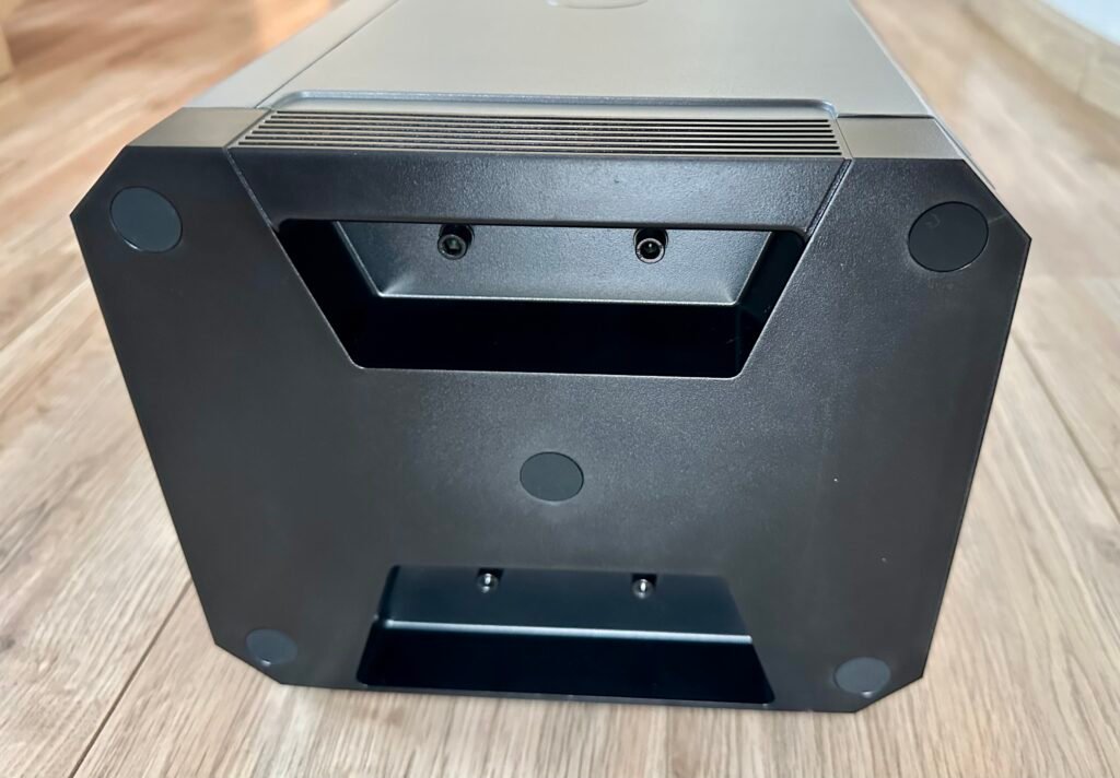 Die HiBattery 1920 AC besticht durch ihr solides, fast industrielles Design mit einem robusten Metallgehäuse. Insbesondere die Rückseite vermittelt einen Eindruck von Zuverlässigkeit. Diese hochwertige Verarbeitung macht das Produkt in Bezug auf das Design etwas attraktiver als eine durchschnittliche Steckbatterie.