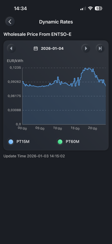 - Die dynamischen Tarife basieren auf den Daten von ENTSO-E. Derzeit besteht keine Möglichkeit, selbst einen Aufschlag anzugeben oder die Preise anzupassen.