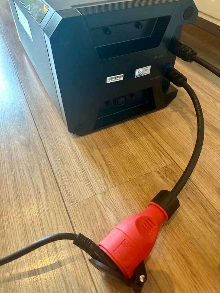 Die netzunabhängige Steckdose unterstützt auch den Anschluss von Solarmodulen über einen Mikro-Wechselrichter. Wir haben dies erfolgreich mit unserem APsystems EZ1-M und zwei 440-Wp-Solarmodulen getestet. Wenn die HiBattery an das Hausnetz angeschlossen ist, wird die Batterie über den Mikro-Wechselrichter aufgeladen, während gleichzeitig Geräte an derselben netzunabhängigen Steckdose mit Strom versorgt werden. Auch im Inselbetrieb (bei Stromausfall oder an Standorten ohne Netzspannung) funktioniert dieses System einwandfrei; Laden und Verbrauch über den Off-Grid-Anschluss sind dann beide möglich. Dazu muss jedoch in den Einstellungen der Batterie der EPS-Modus aktiviert werden.