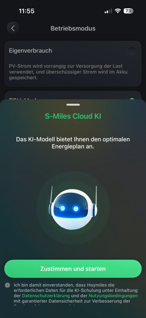 - Mit der App verbinden – Bitte laden Sie die Hoymiles-App herunter, verbinden Sie die Batterie über WLAN und führen Sie die Konfiguration durch. Dies ist relativ selbsterklärend. Hier können Sie auch die Lade- und Entladeeinstellungen manuell verwalten (auch über einen Zeitplan). Außerdem können Sie einen bestimmten Modus auswählen.