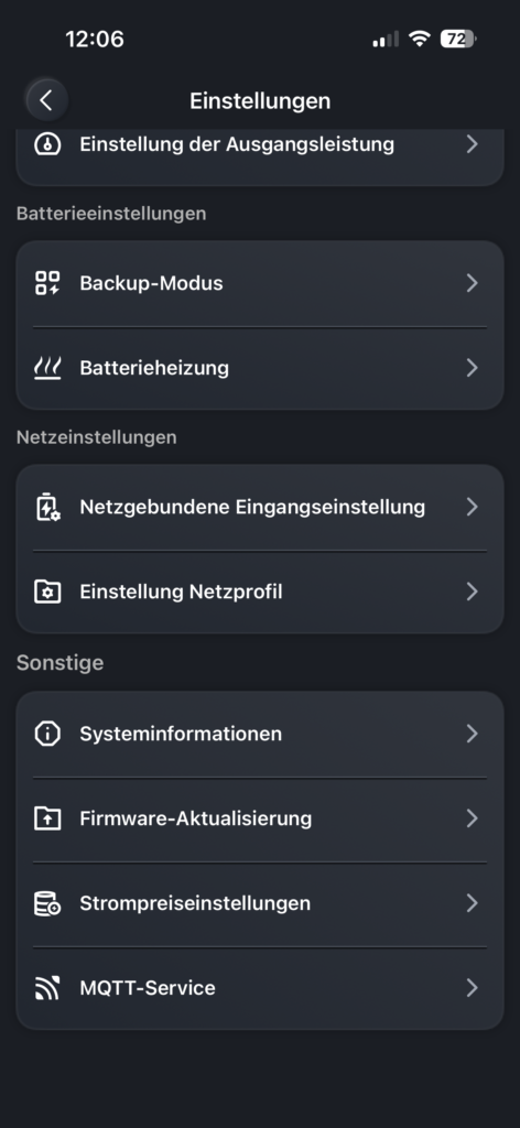- ▸ Modus: Der Nulleinspeisungs-Modus funktioniert sehr gut.