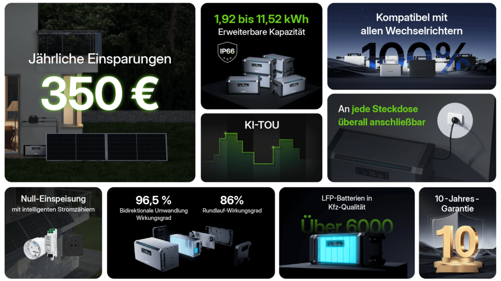 - ▸ Die Batteriekapazität ist nicht modular erweiterbar, sondern nur durch Hinzufügen eines zusätzlichen Geräts