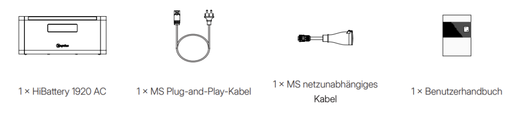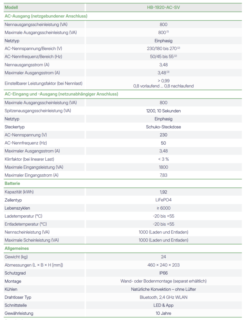 Dies sind die wichtigsten Spezifikationen. Weitere Spezifikationen finden Sie in der Bedienungsanleitung des HiBattery 1920 AC.