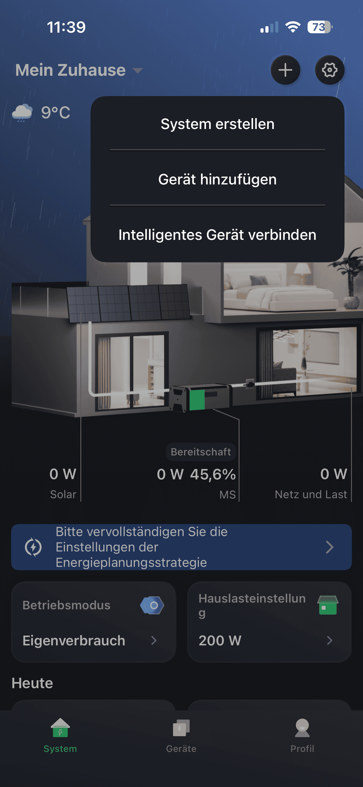 Der Hauptbildschirm der Hoymiles-App ist übersichtlich und ansprechend gestaltet. Am unteren Rand finden Sie praktische Grafiken, die den Energieverbrauch über verschiedene Zeiträume hinweg darstellen, darunter eine beeindruckende Sankey-Karte. Sogar die aktuelle Wetterlage wird in der Darstellung des Hauses berücksichtigt; so können Sie beispielsweise sehen, dass es gerade tatsächlich schneit.