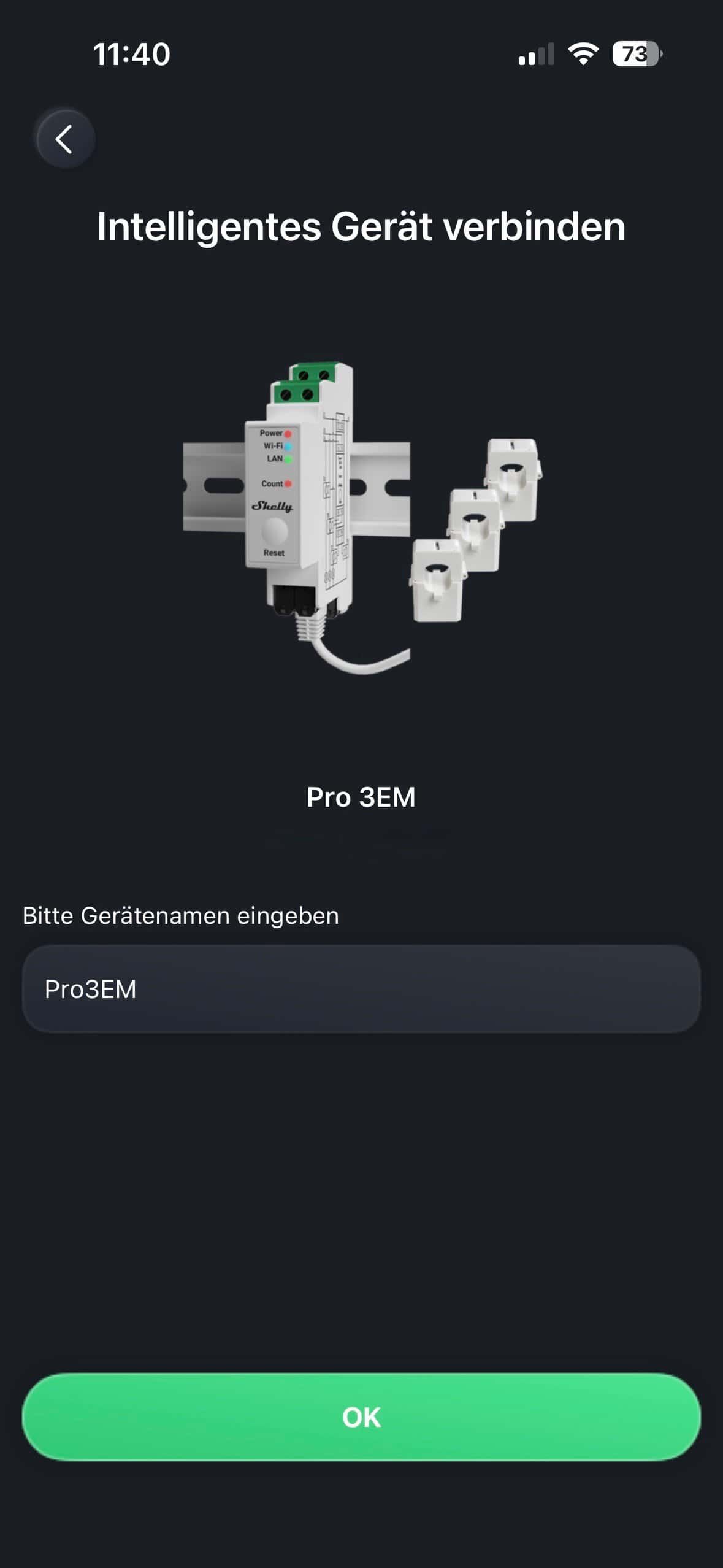 Nachfolgend finden Sie Screenshots der Installation des Shelly 3 Pro EM.