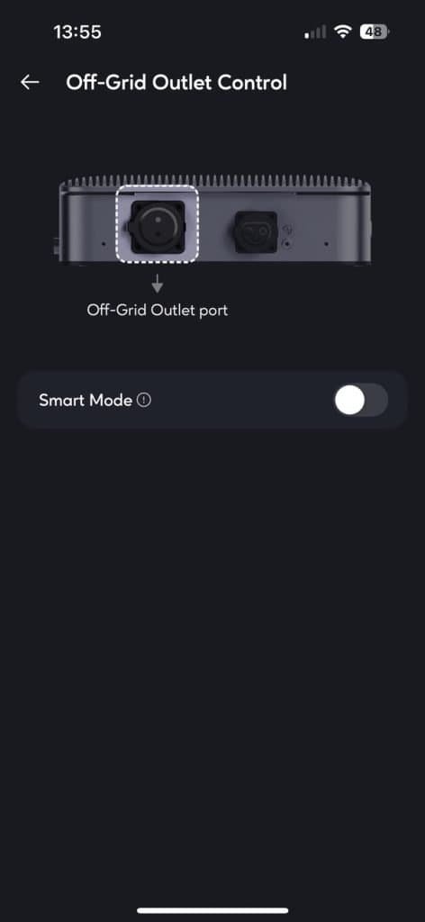 However, there is still room for improvement. For example, we noticed that the firmware sometimes gives a confusing picture of the energy flows. In the app, it shows that the battery is discharging to the off-grid output, while in reality it is charging. At the same time, the SOC (State of Charge) simply increases, which confirms that the visual representation in the app is not completely accurate.